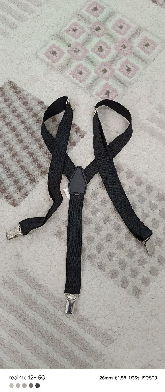 siyah gotik tarzda, tokalı ve metal klipsli, yumuşak kumaştan askı.