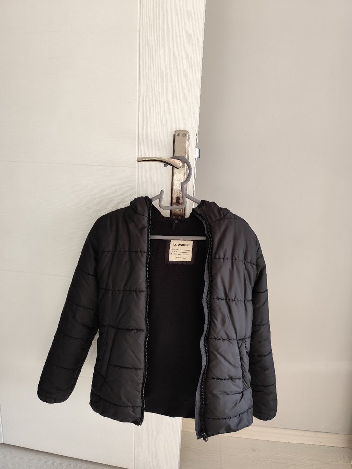 Çocuk Siyah Kapüşonlu Fermuarlı Mont