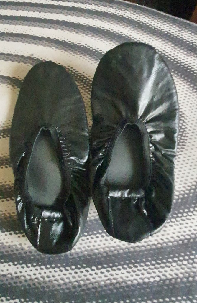 Siyah renkli, lastikli esnek çocuk bale ayakkabısı, düz ve desensiz tasarıma sahiptir. Kullanıma bağlı tabanında aşınma var. Kullanıma engel değil.