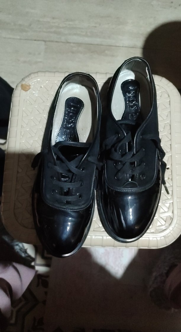 cocuk için siyah, parlak yüzeyli, blok topuklu, lastik malzemeden yapılmış gotik tarzda klasik ayakkabılar. Ofis kullanımı için uygundur.