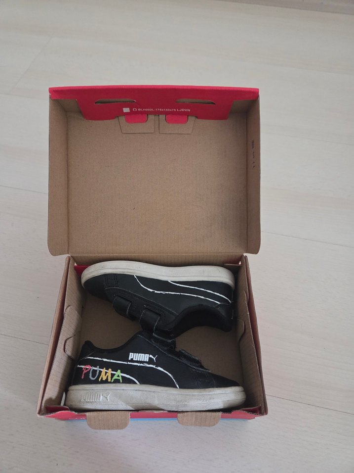 Siyah renkli Puma çocuk spor ayakkabısı, baskılı desen ve kolay kullanım için cırt cırtlı bantlıdır. Kauçuk tabanlıdır kutusuyla gönderilecektir.