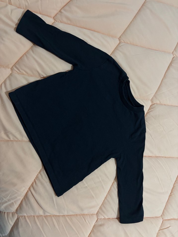 Siyah renkte, uzun kollu ve desensiz çocuk tshırtü Katmanlama için rahat bir kullanım sağlar. 3/4 yaş