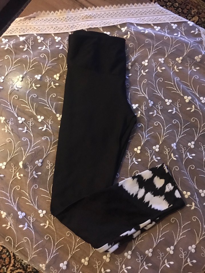 Siyah, alt kısmında zebra desenli, elastik sentetik kumaştan yapılmış, günlük kullanım için uygun kadın taytı.