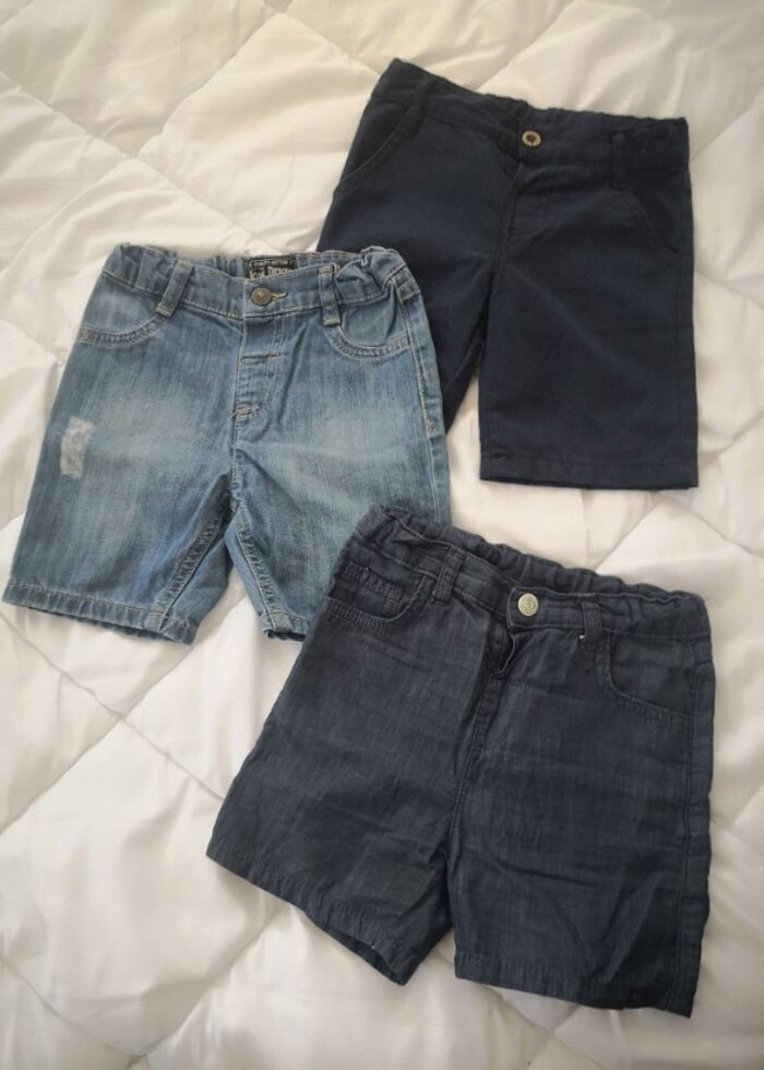 3 adet çocuk şortu. Hepside çok temiz ve sağlam durumda. Hesabımda ayrı ayrı satışları mevcuttur. 2 si 12-18 ay biri 2-3 yaş içindir.