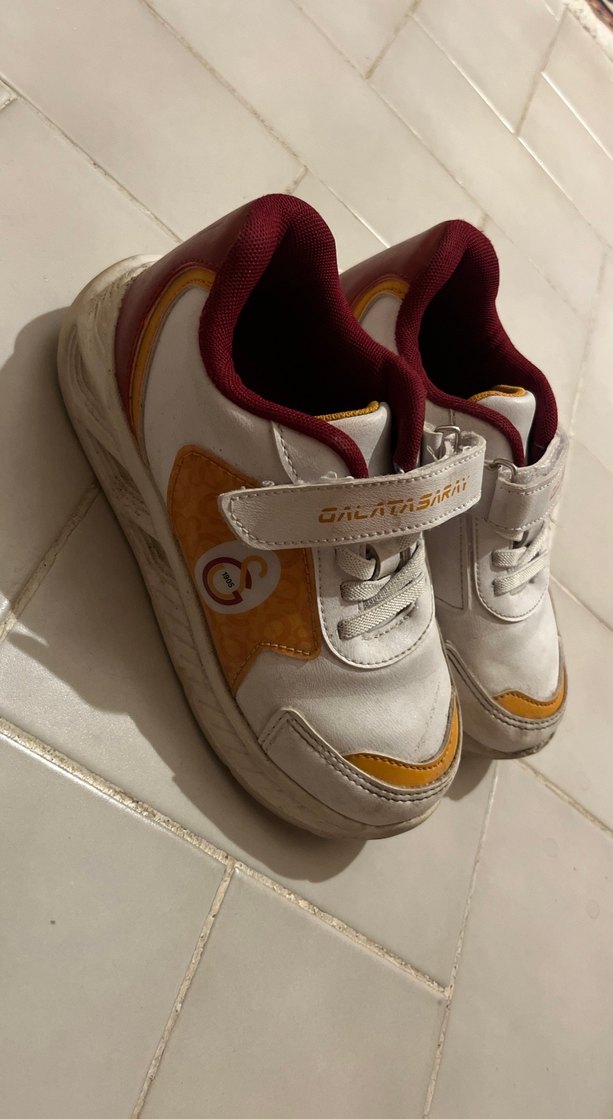 Beyaz tabanlı, renkli baskılı kız çocuk spor ayakkabısıdır. Kauçuk taban ve kolay kapanan cırt cırtlı bant içerir.