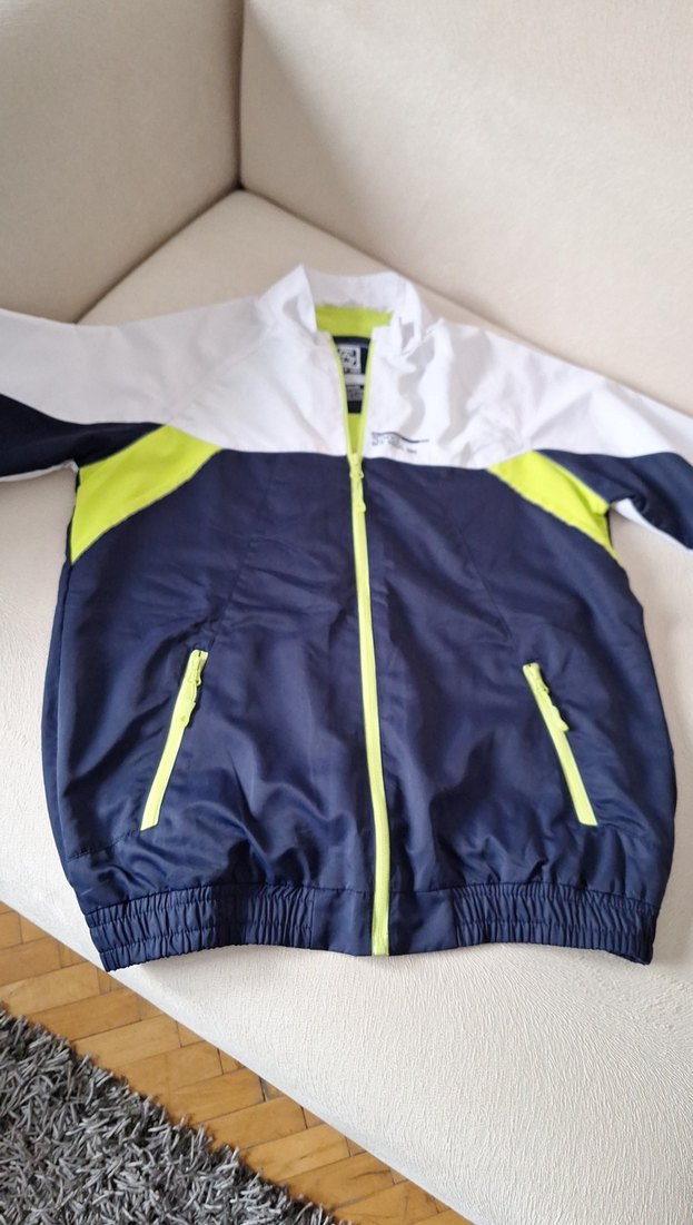 lacivert sentetik kumaştan, fermuarlı ve uzun kollu, normal boyda spor şıklığında rüzgarlık.