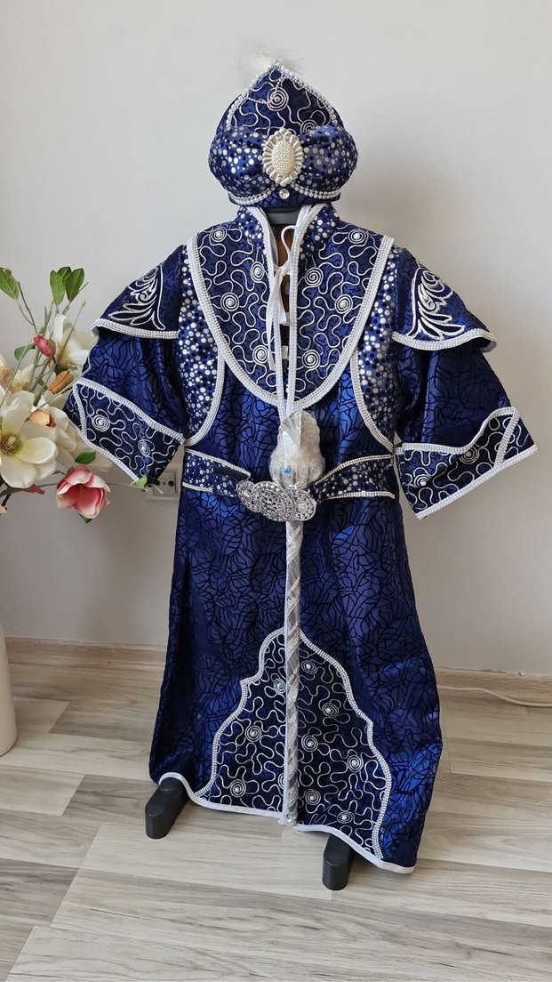 Çocuk Sünnet Takımı Lacivert (Ertuğrul Takım) Fotoğrafta yer alan bütün kıyafeler şapka, elindeki asa gibi bütün ürünler fiyata dahildir. 3 numara, 8-9 yaş erkek çocuğuna uygundur. Ürün yalnızca fotoğraf çekiminde giyilmiştir. Yanında pijaması da hediyedir.