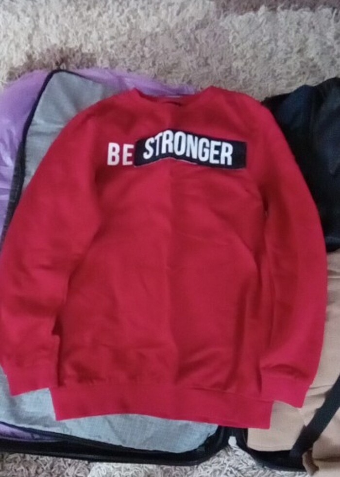 Koyu kırmızı sweatshirt hiçbir deformasyon yoktur leke sökük vs yok.tertemiz