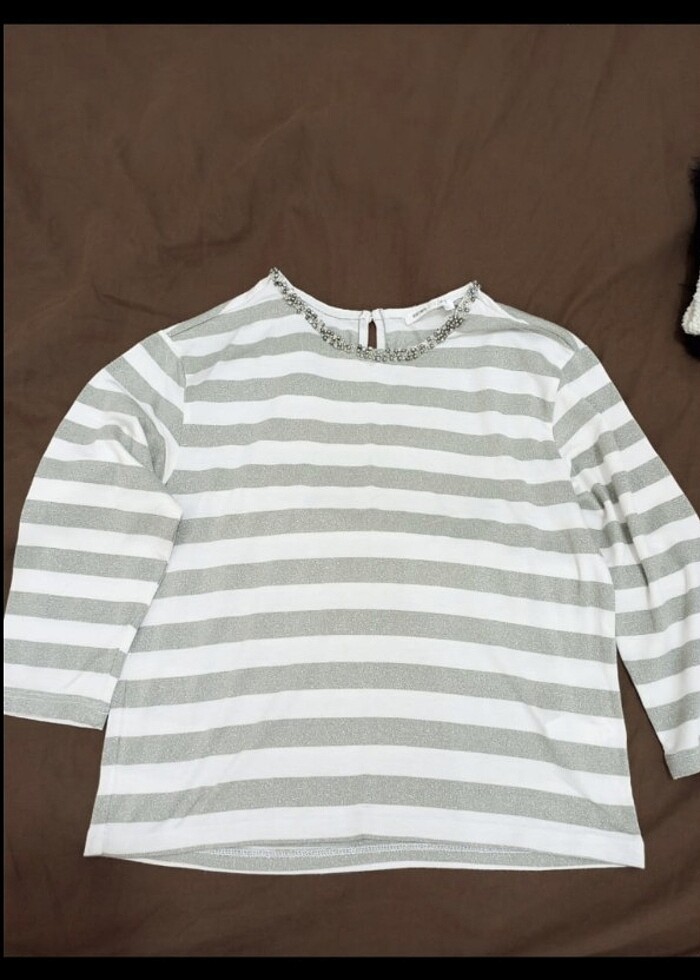 Yaka boncuk detaylı çocuk t-shirt bady