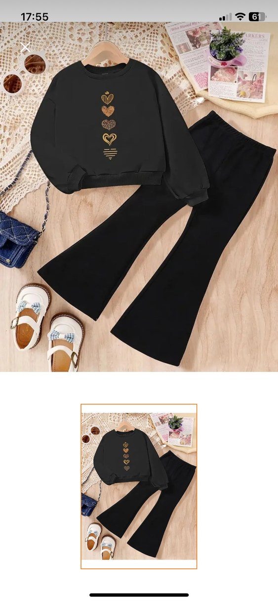 Çocuk eşofman takımı, uzun kollu ve yuvarlak yakalıdır. Sentetik kumaştan yapılmış, üst kısmında baskılı kalp deseni bulunur. Günlük kullanım için rahat ve şık bir seçenektir. ❤️