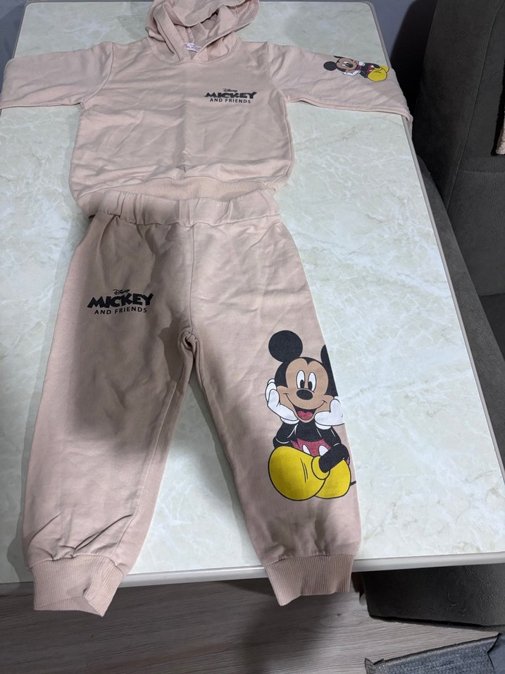 çocukları için kapüşonlu, düğmeli ve baskılı Mickey Mouse figürlü, gri renkli, yumuşak ve sıcak kumaştan eşofman takımı. Markalar karışık 12-18 ay 18-24 ay karışık