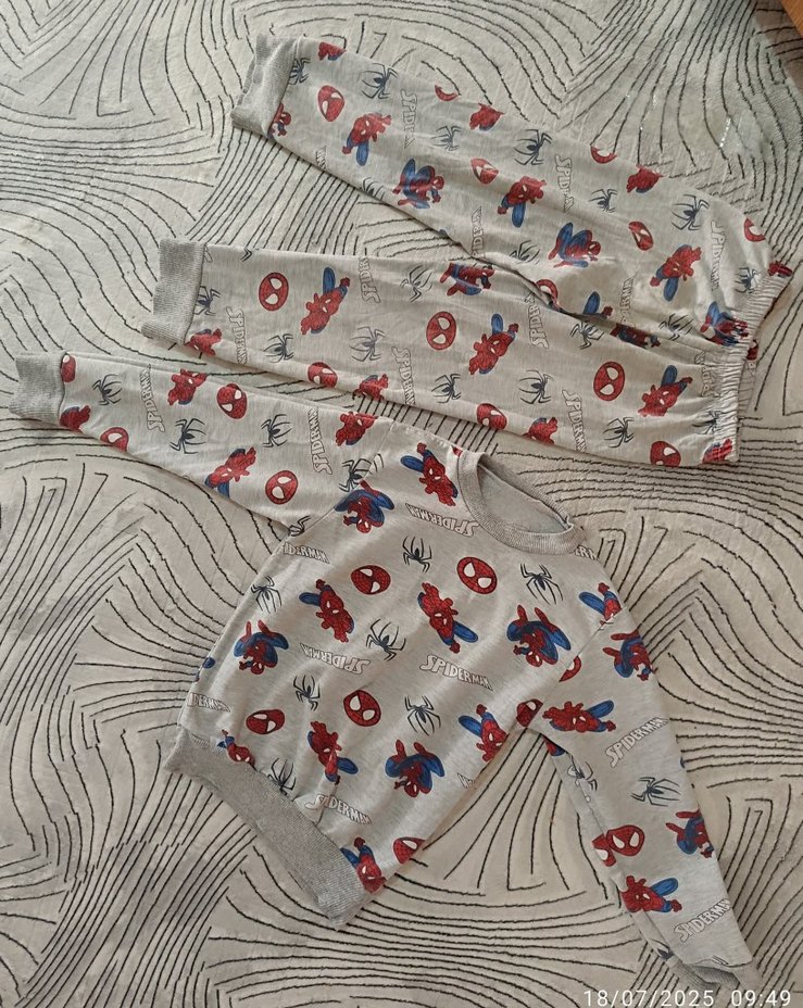 fotoları kaydırın. takım fiyatıdır. erkek çocuk takım. 3.4.5 yaş uyumlu sorunsuz ☘️Örme kumaştan, bol kesim, uzun kollu ve bisiklet yaka erkek pijama takımı. Kısa paçalı, gri zemin üzerine renkli desenli, rahat kullanıma uygun.