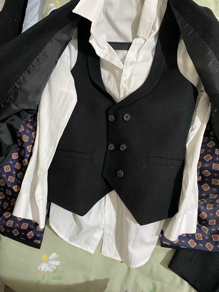 Bir kez giyildi 12-13 yaş bir kez düğnde giyildi temiz sıkıntısız Ceket Gömlek Pantolon Yelek Papyon Şeklinde 4 parçadır Şimdiden hayırlı uğurlu olsun