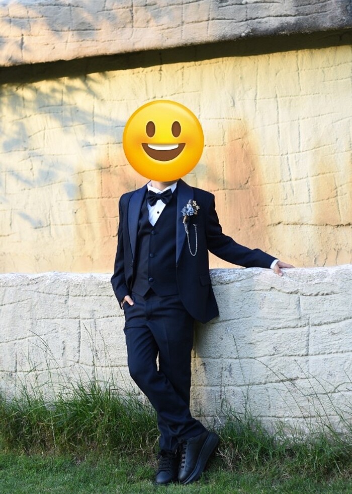 Sünnet için aldığımız bir takım di . Sadece akşam salonda 2 saat giyildi. Pantolon gömlek papyon yelek ve ceketten oluşmaktadır. Pantolon beli ayarlanabilir lastikli.