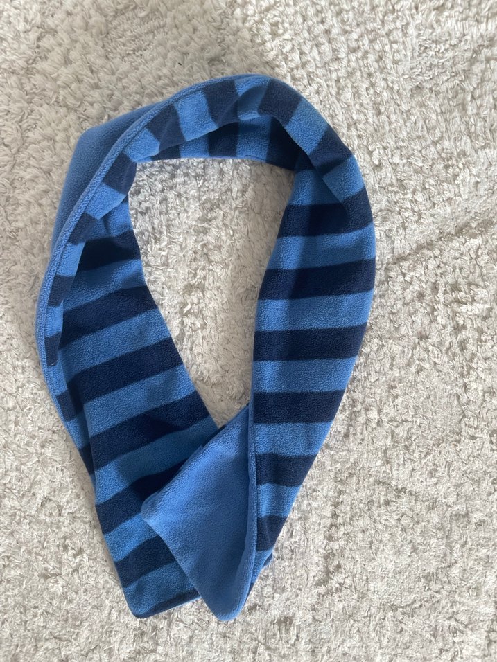 Tchibo çocuk için mavi ve koyu mavi çizgili, rahat ve sokak stili uyumlu atkı. Yumuşak ve sıcak dokusu günlük kullanıma uygundur. 2 yaşına kadar uygundur. #tchibo #atkı