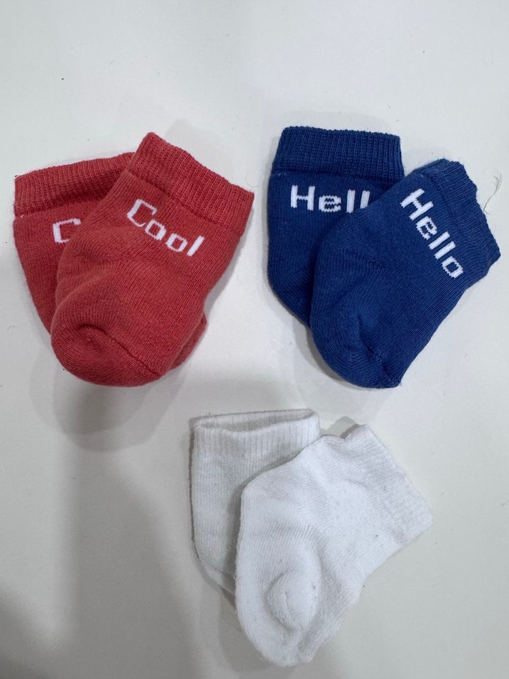 Kız çocuklar için yumuşak ve sıcak fleece çoraplar. Kırmızı, lacivert ve beyaz renklerde, üzerinde 'Hello', 'Hell' ve 'Cool' yazıları bulunur.