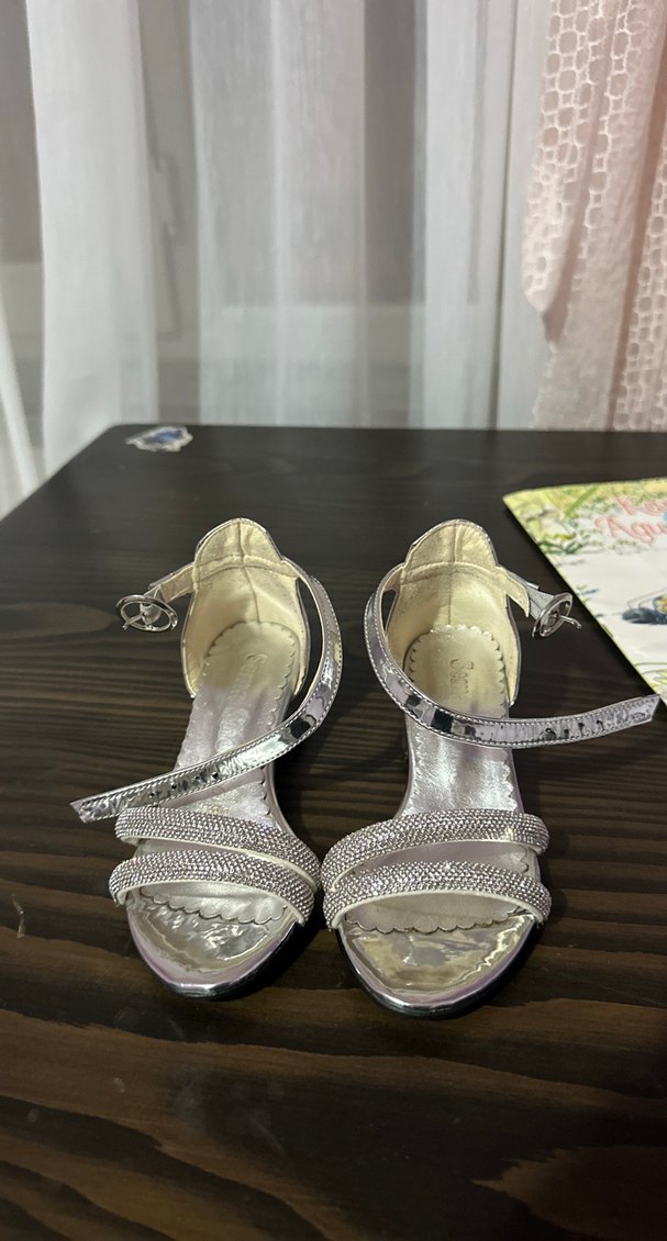 Gri yılan desenli, parlak stiletto topuklu ayakkabılar tokalı kayışa sahiptir. Bir kere evde doğum gününde giydik bir iki saat sonra dolaba kaldırılmıştır