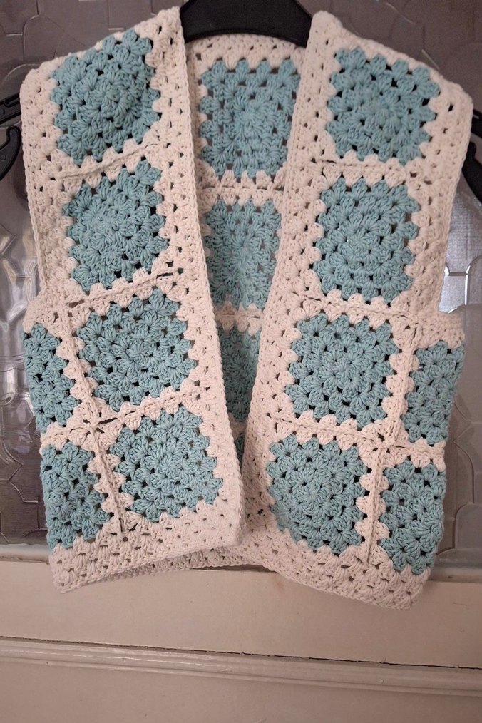 Pastel turkuaz ve krem renklerde, bol kesim örgü çocuk Yelek Bohem Rahat tarzıyla günlük kullanıma uygundur Tamamen El Emeği Yüzde Yüz Koton İp Unisex