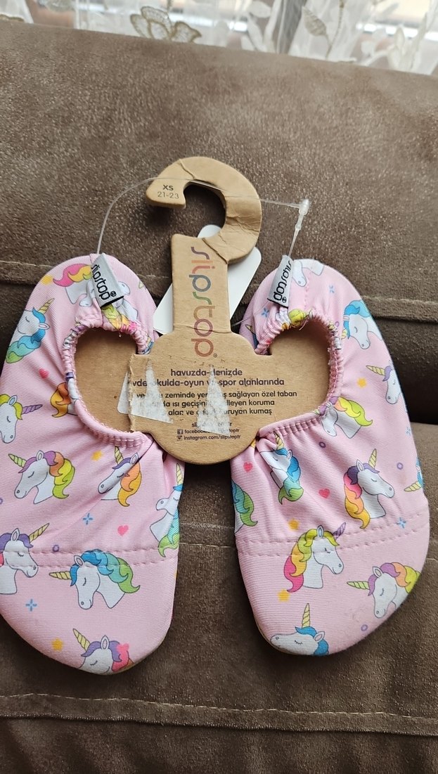 Yumuşak ve sıcak kumaştan yapılmış, pembe pastel tonlarda unicorn desenli çocuk ev ayakkabısı. Elastik açılımla rahat kullanım sağlar. Markası siipstop 21/23 Numara uyumlu.