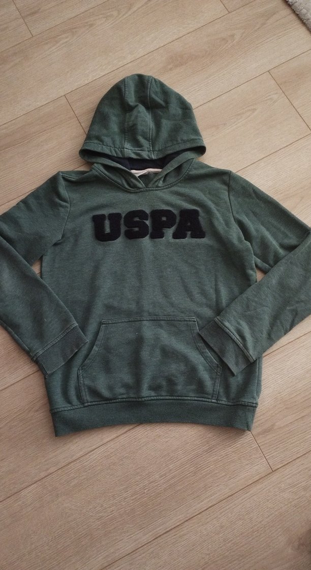 Kız çocuk için yumuşak fleece kumaştan, kapüşonlu ve uzun kollu, bol kesim sweatshirt. Önünde "USPA" yazısı bulunur, rahat ve sade sokak stili için uygundur.