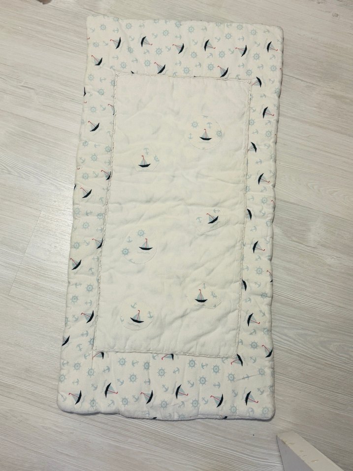 Çocuklar için beyaz ve gri tonlarda, deniz temalı desenlere sahip yumuşak sentetik kumaştan uyku minderi. Rahat bir dinlenme alanı sunar. ️