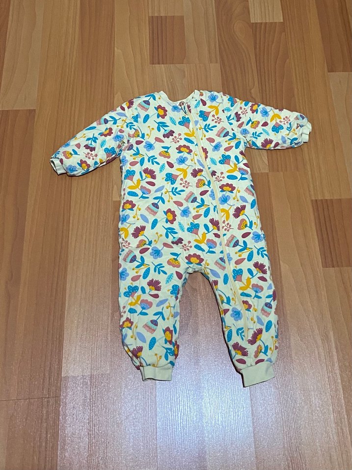 Yumuşak ve sıcak kumaştan yapılmış, çiçek desenli renkli çocuk uyku tulumu. Ön fermuar ve lastikli manşetlere sahiptir. 2.5 togg gayet sıcak tutar göründüğü gibidir.