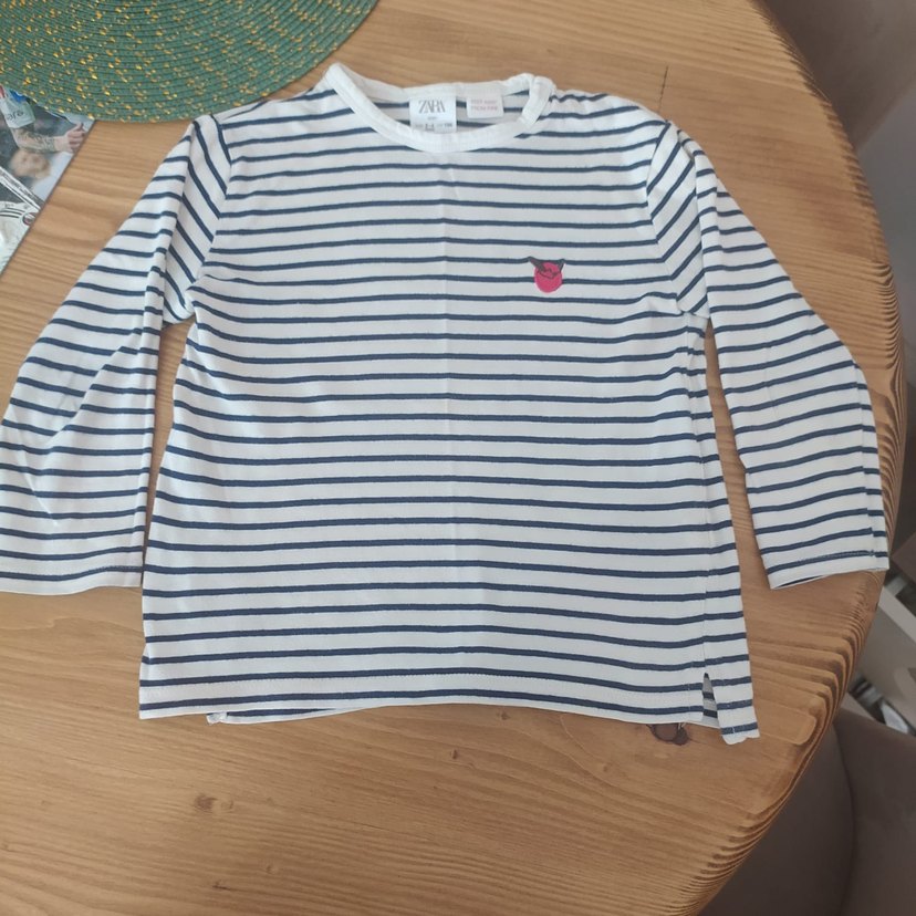 Pamuklu, bol kesim uzun kollu çocuk tişörtü. Üzerinde çizgili desen ve omuzda kolay giydirme için düğmeler bulunur. Sokak stiline uygun. 3-4yaş