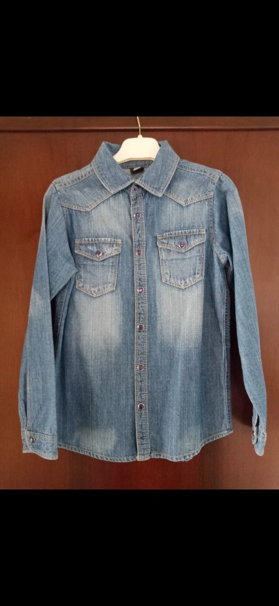 Çocuk Uzun Kollu Düğmeli Denim Gömlek