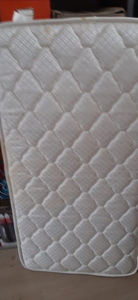 Beyaz renkte, bir yüzü jakarlı kapitone desenli diğer yüzü pamuklu çocuk yatağı 60*120 sadece Ankara içi elden teslim edilir