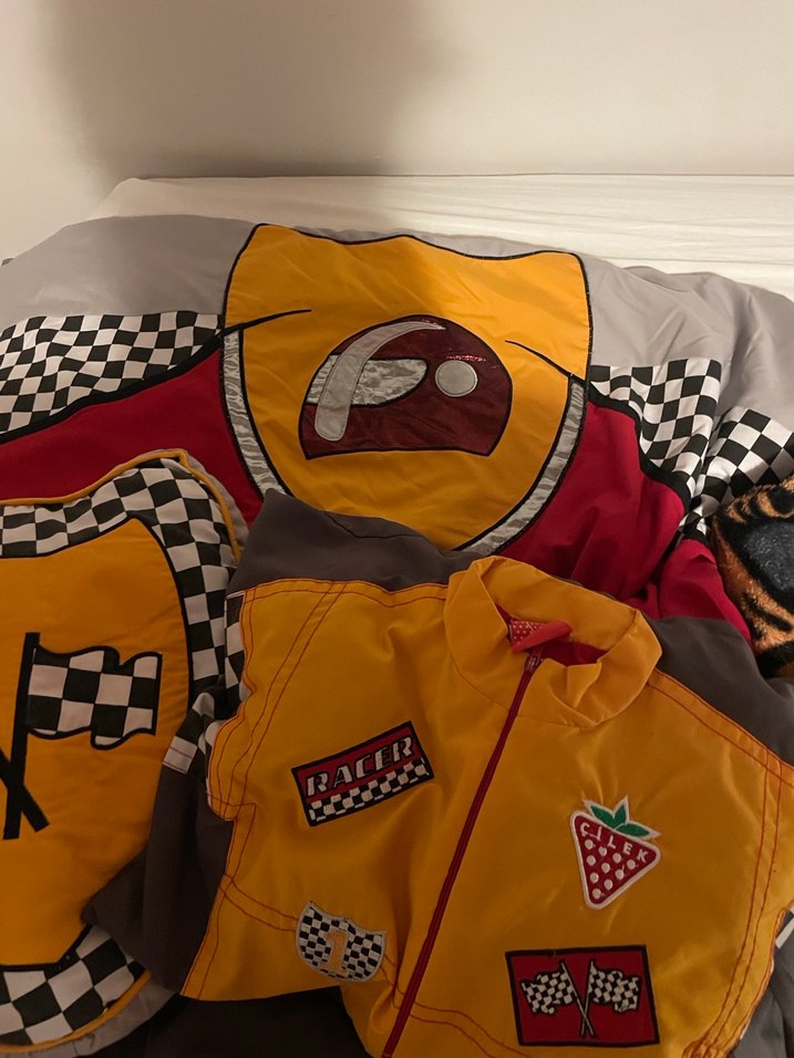 Çilek mobilya arabalı yatak örtüsü ve yastıkları. Kullanıma bağlı yıpranmış yerleri var. Fotodaki gibi. Ama tertemizdir.