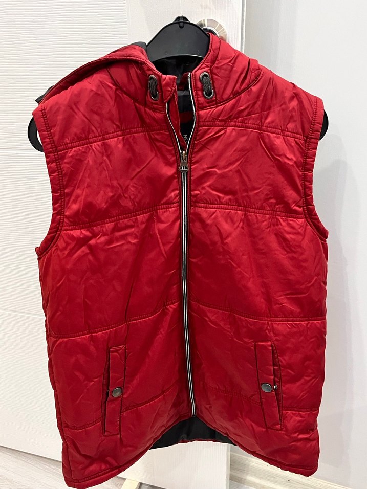 Bordo renk, kapüşonlu ve fermuarlı çocuk yeleği. Kolsuz ve vücuda oturan kesimiyle rahat kullanım sağlar. Önünde düğmeli cepler bulunur. Hiçbir sorun ve deforme yoktur. Markası lc waikiki . 13-14 yaş için uygundur. #erkekçocukyelek #yelek #çocukyelek #şişmeyelek