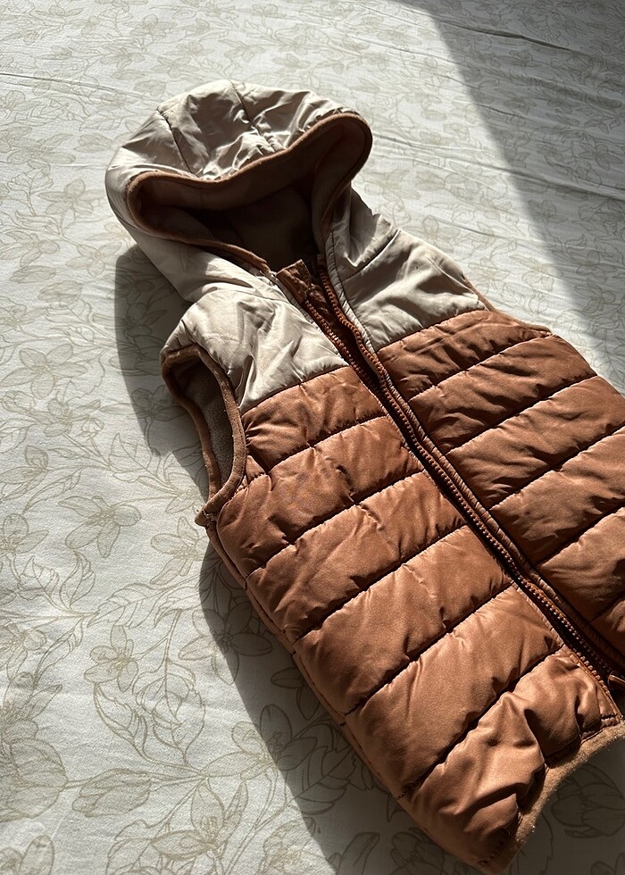 Kapüşonlu kalın,içi polarlı şişme yelek.