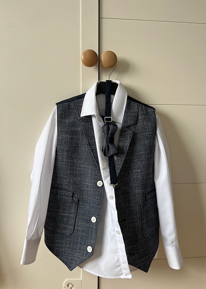 Pantolon,gömlek yelek ve papyon. 1 kez giyildi.5-6 yaş