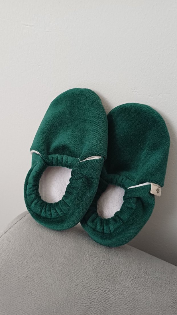 Çocuklar için yeşil renkli, elastik yapılı, yumuşak ve sıcak patik. Düz ve rahat kullanıma uygundur.