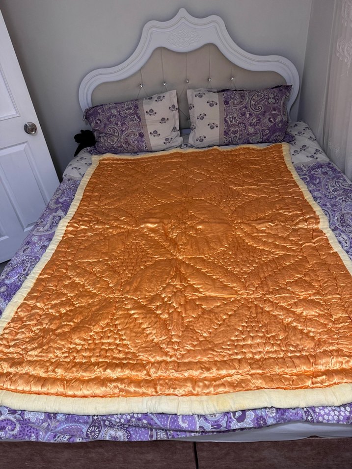 130x170 arka kısmı turuncu boya vermıstır kesınlıkle leke degıldır yıkaması yapılıp kaldırılmıştır alana hayırlı olsn 300 tl dır Parlak kahverengi yüzeye sahip, yumuşak dokulu ve desensiz yorgan. Her yatağa sıcaklık ve konfor katar. ️