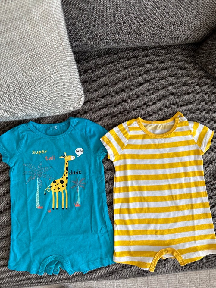 Sarı çizgili ve renkli zebra desenli çocuk tulumları mavi olanında 'super' yazısı bulunur. Çocuklar için yumuşak kumaşlıdır.