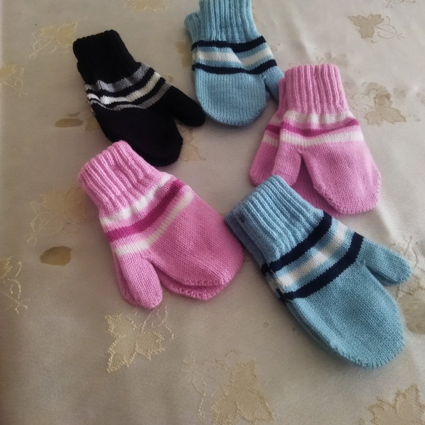 Çocuklar için zebra desenli, triko örgü eldiven. Yumuşak ve sıcak tutan kumaştan, sade ve temel tarzda.