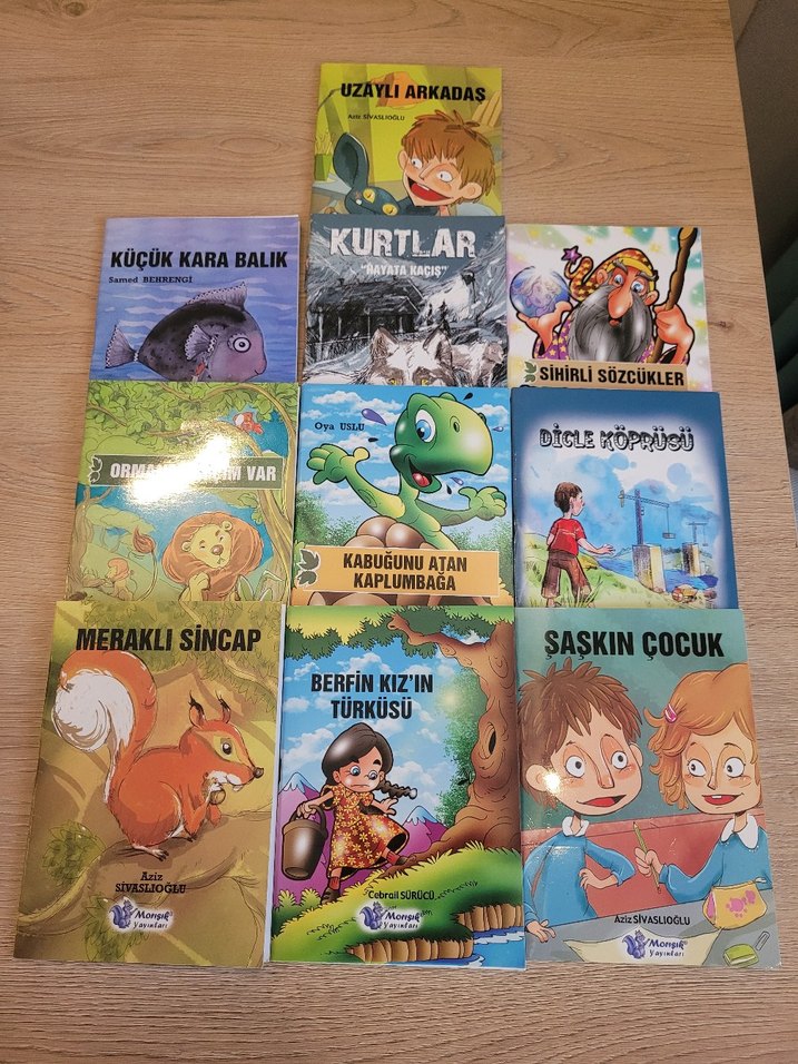 Meraklı sincap, uzaylı arkadaşlar ve sihirli sözcükler gibi karakterlerin yer aldığı 10 çocuk kitabından oluşan set. Her kitap renkli çizimler ve farklı hikayeler sunar.