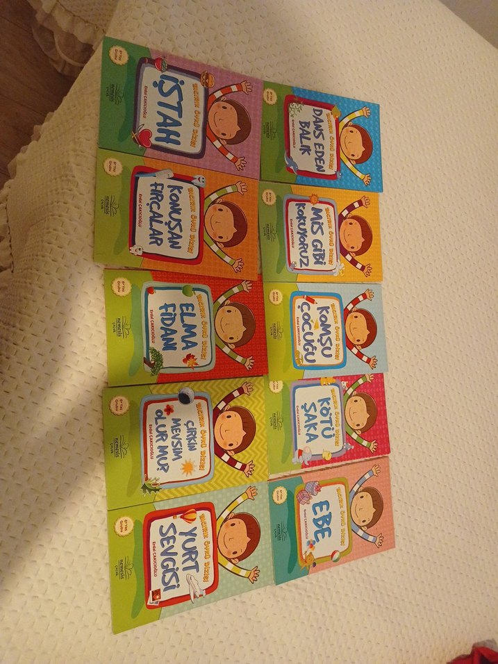 Konuşan fırçalar, elma, sevgi gibi temalarla dolu 10 renkli çocuk kitabı seti. yıpranmamış yepyeni 10 adet hikaye kitabı