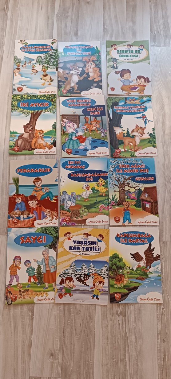 Arkadaşlık, saygı, fedakarlık ve doğa temalı 12 çocuk kitabından oluşan set. Hayvanlar ve maceralar anlatılır.