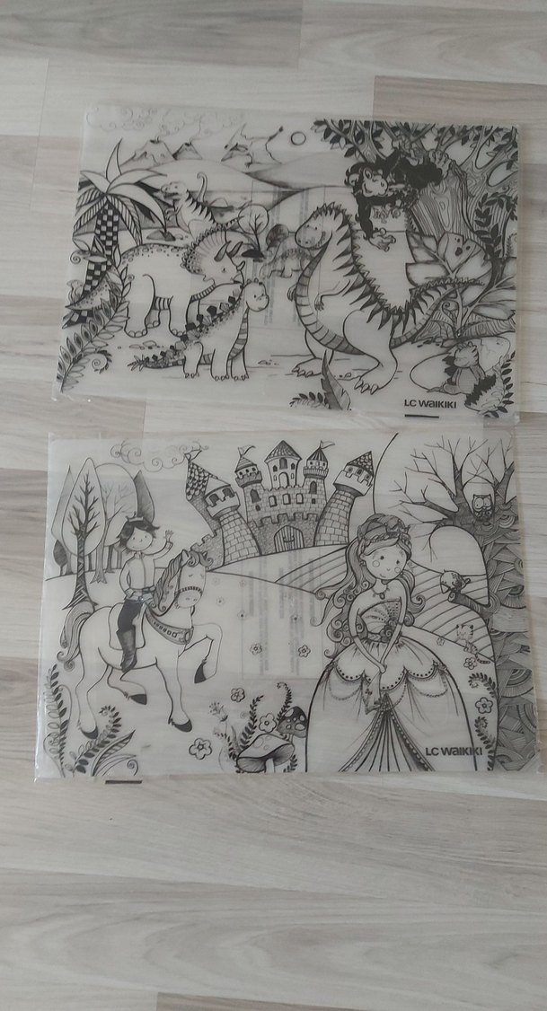 lcw boya/sil puzzle seti, biri dinozorlar diğeri prenses ve şövalye temalı çocuklar için. 47cmx33cm