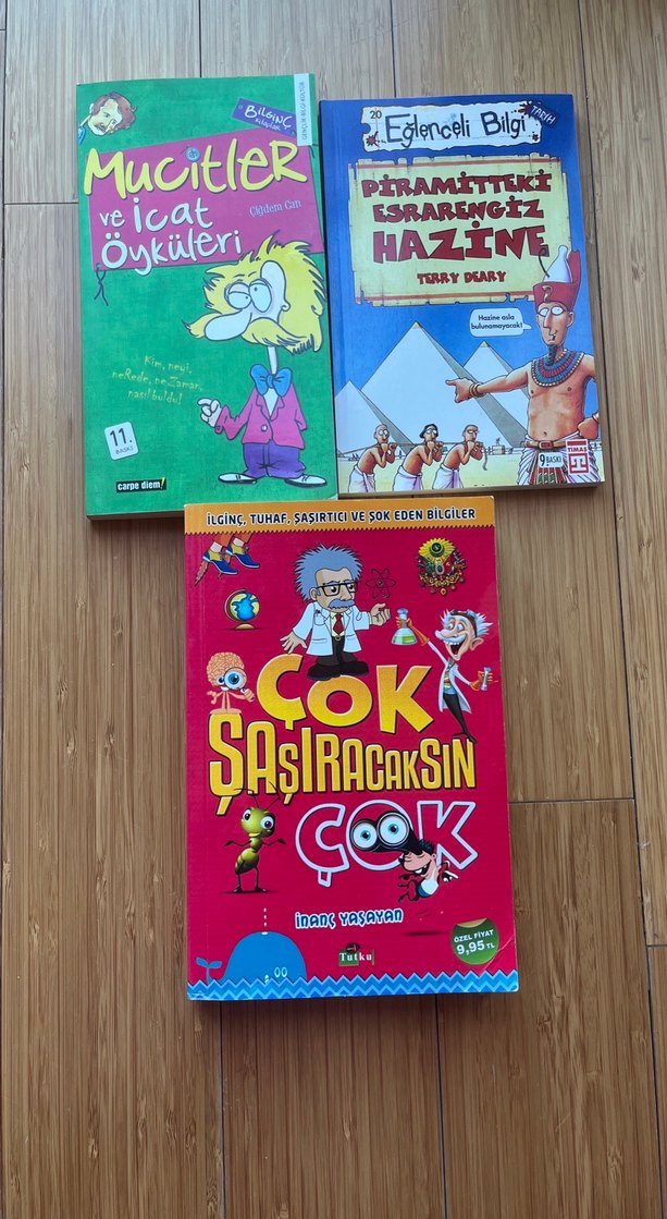 Çocuklar için mucit hikayeleri, piramitlerdeki esrarengiz hazine ve şaşırtıcı bilgiler içeren üç kitaplık set. Renkli ve öğretici içeriklerle dolu.