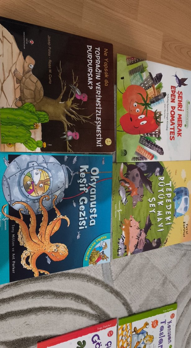 Toprak, şehir merakı, okyanus keşfi ve hayvanlar hakkında 4 eğitici çocuk kitabı seti.