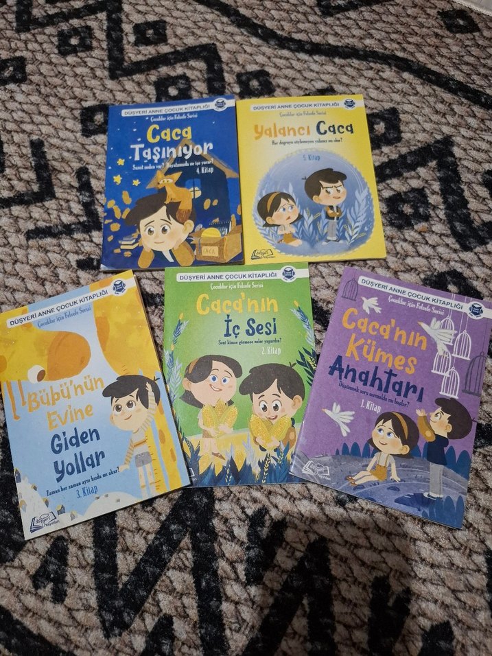 Çocuklar için Caca serisinden 5 kitaplık set. Taşınma, iç ses ve yolculuk gibi hikayeler içerir.