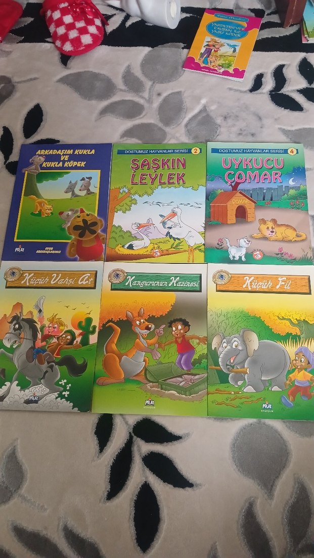 Hayvan temalı hikayeler içeren 6 çocuk kitabı seti, 'Şaşkın Leylek' ve 'Uykucu Çomar' gibi kitaplar dahil.