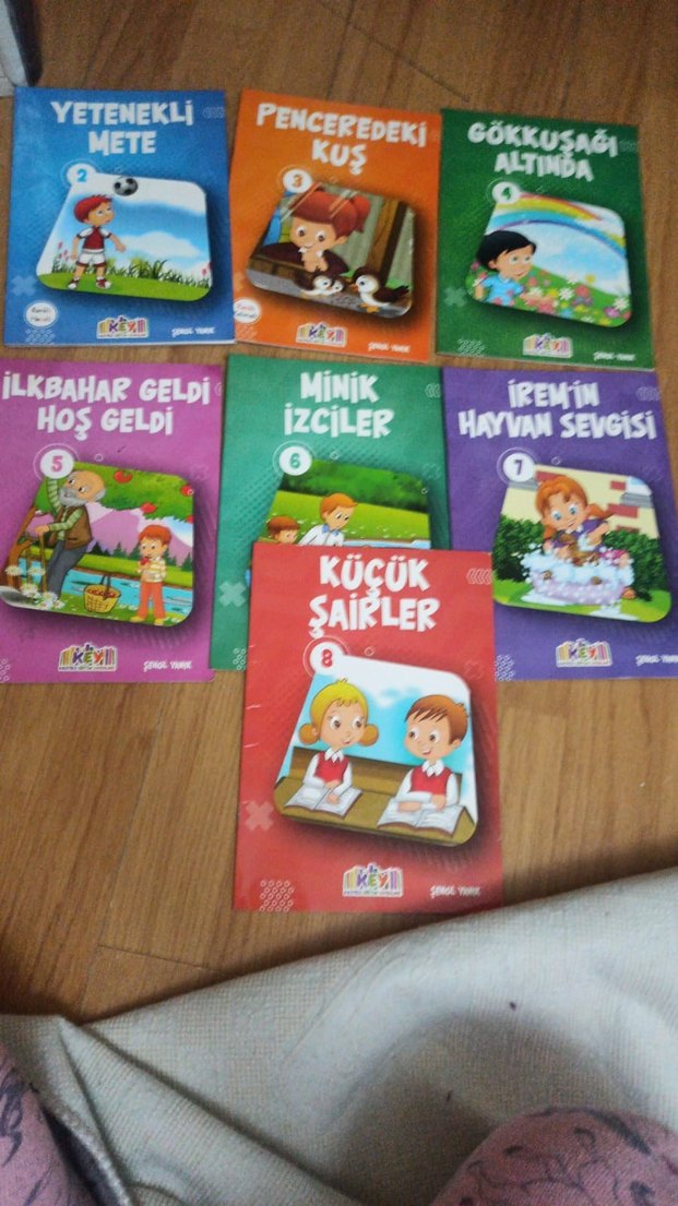 Mete, Kuş, Minik İzçiler gibi başlıklarla 8 çocuk kitabı seti. Renkli resimler ve basit metinlerle küçük yaşlar için uygun.