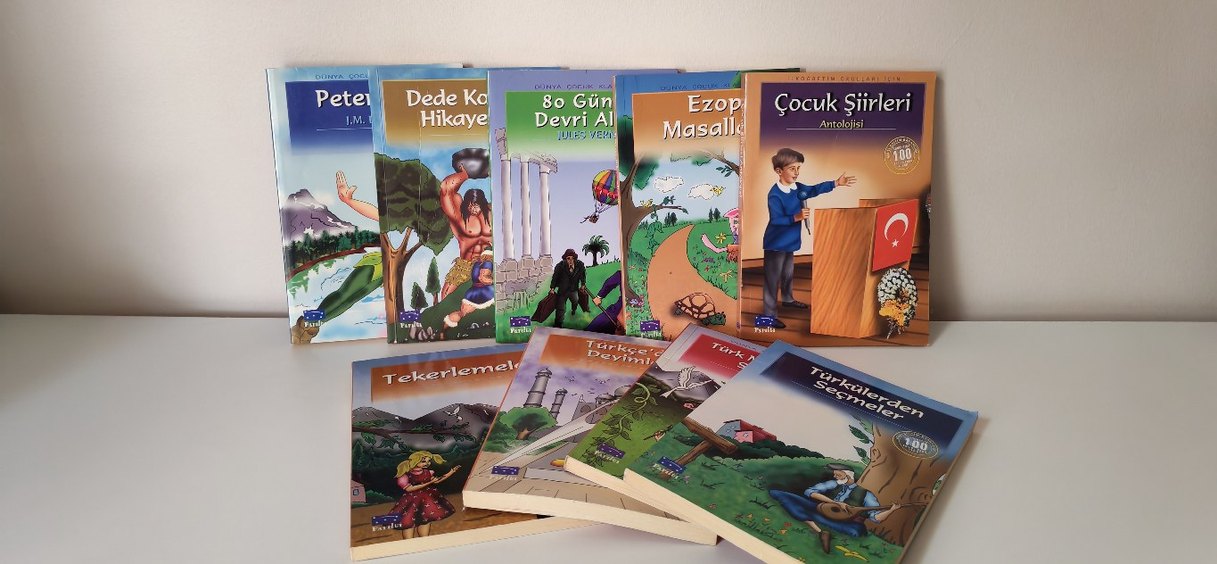 Dede Korkut Hikayeleri, Ezop Masalları ve 80 Gün Devri Âlem gibi klasik çocuk hikaye kitapları seti.