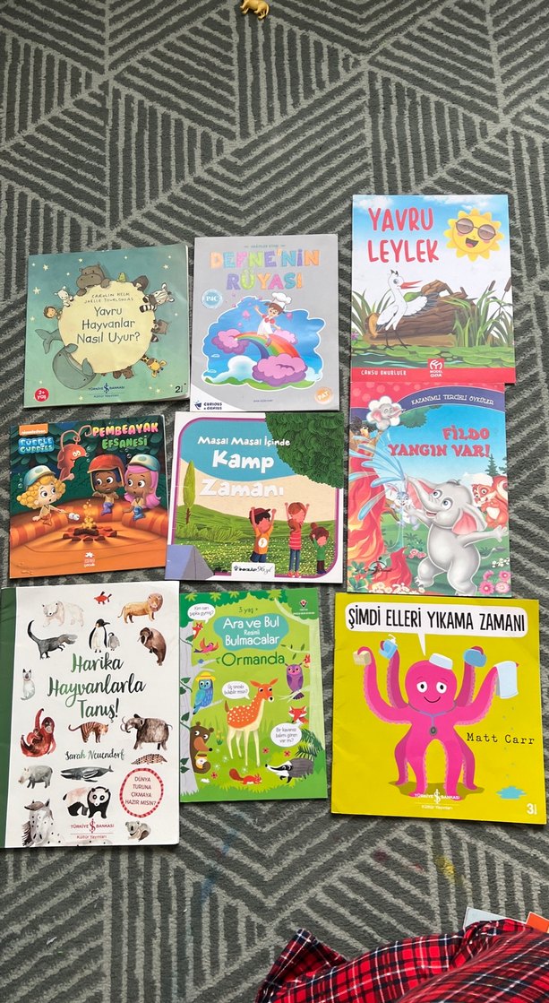 Hayvanlar, macera ve doğa temalı 9 çocuk kitabı seti. "Yavru Leylek," "Fildo Yangın Var" ve "Harika Hayvanlarla Tanış!" gibi kitaplar içerir.
