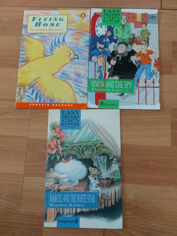 Stephen Rabley ve Elizabeth Laird'in yazdığı üç çocuk kitabı: 'Flying Home', 'Simon and the Spy' ve 'Marcel and the White Star'. vede tamamı 9 adet İngilizce çocuk hikaye kitapları.