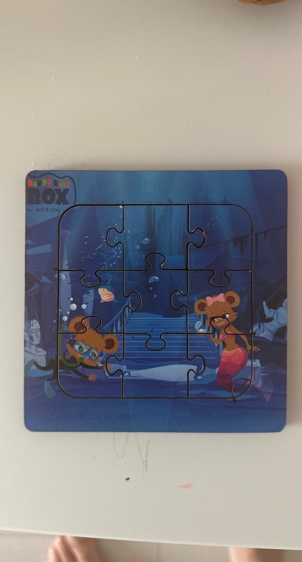 Koyu mavi renkte, 9 parçalı, iki fare karakterin denizaltında macerasını gösteren çocuk puzzle'ı.